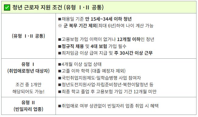 -연령: 만 15세에서 34세 이하의 정규직 청년