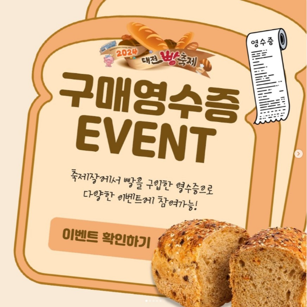 * 구매영수증 EVENT : 축제에서 빵을 구입한 영수증으로 다양한 이벤트를 준비했습니다. 확인하고 가세요~💌