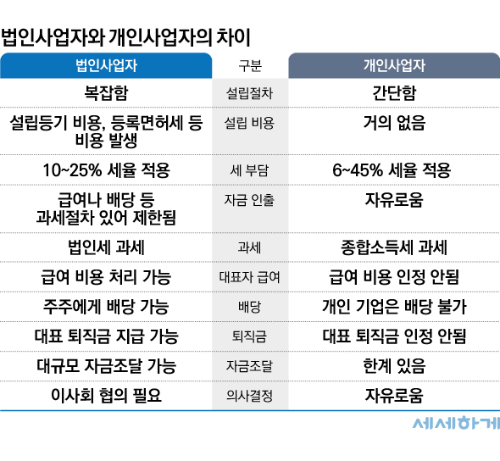 개인사업자와 법인사업자는 각각 장단점을 가지고 있기 때문에
