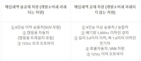 단, 비영업용 차량일 경우는 차량의 종류에 따라 부가세 매입세액 공제 여부가 달라져요. 아래 표를 참고해 주세요!