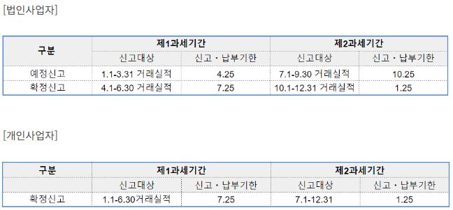 *1기 과세기간 = 1~6월, 2기 과세기간 = 7~12월