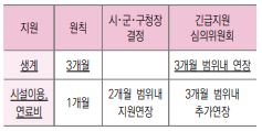 ① 생계지원은 3개월, 주거・시설이용・연료비 지원의 경우 1개월, 의료・교육지원의 경우 1회