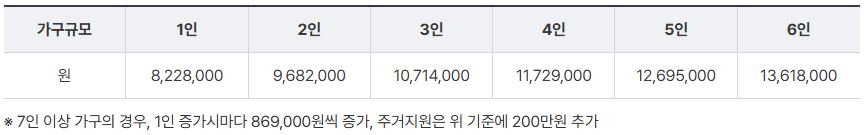 생계 : 713,1천원/월(1인기준). 1,833,5천원/월(4인기준)