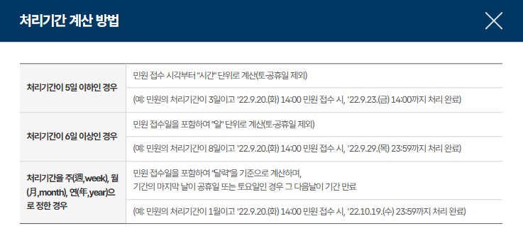 처리기간: 유형에 따라 다름( 하단 참조 )