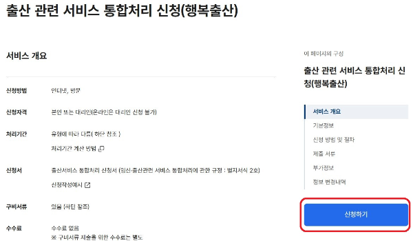 출산 관련 서비스 통합처리 신청(행복출산) | 민원안내 및 신청 | 정부24