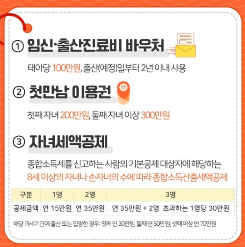 임신·출산진료비 이용권이 단태아 100만원, 다태아 140만원 → 태아당 100100만 원으로 증액되었습니다.