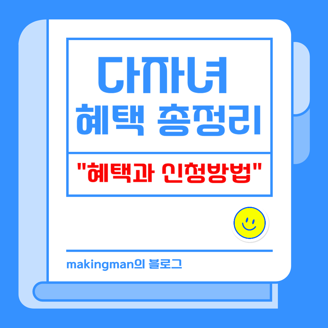안녕하세요. 메이킹맨입니다. 다자녀 가구의 지원이 확대됐다는 사실을 다들 알고 있을 겁니다! 다자녀 가구의 기준도 완화됐고(3자녀에서 2자녀로), 임신·출산진료비 이용권, 첫 만남 이용권 등도 상향 조정되었습니다! 그러나 이런 항목들이 뭐가 어떻게 어떤 형태로 지원이 되는지에 대해서 잘 모르실 수도 있을 듯한데요. 이번 포스팅에서는 좀 더 알아보도록 하겠습니다. 다자녀를 둔 부모라나 다자녀를 계획하고 있는 부모라면, 꼭 알아야 할 법령과 제도를 함께 살펴볼게요!