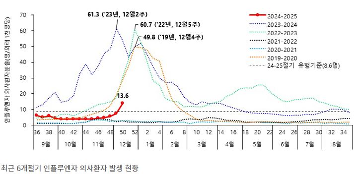 -2024-2025절기(’24.9월~’25.8월) 유행 기준: 인플루엔자 의사환자 8.6명(외래환자 1천 명당)