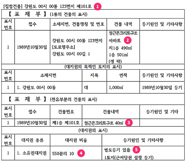 1. 건물의 주소를 확인하세요. 여기 등기부등본에 적힌 주소는 계약서에 적힌 주소와 같아야 해요. 내가 303호에 입주하는데, 301호의 등기부등본을 보여줬다? 다시 보여달라고 하세요.