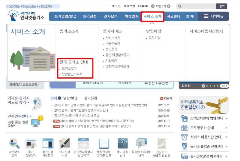 가까운 등기소 위치 및 무인민원발급기 위치가 궁금하신 분은 인터넷 등기소 누리집