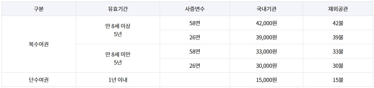 발급 여권 및 수수료