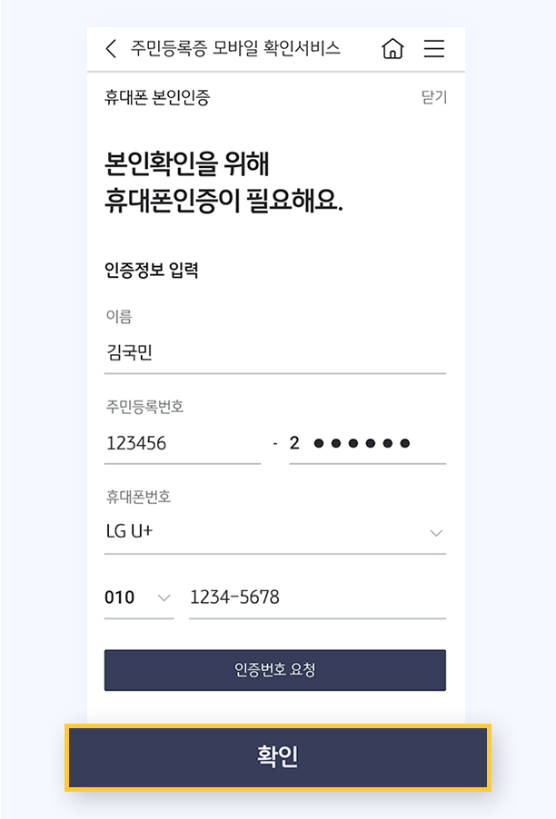 *주민등록법 제25조에 따라 실물 주민등록증과 동일한 효력을 가집니다.