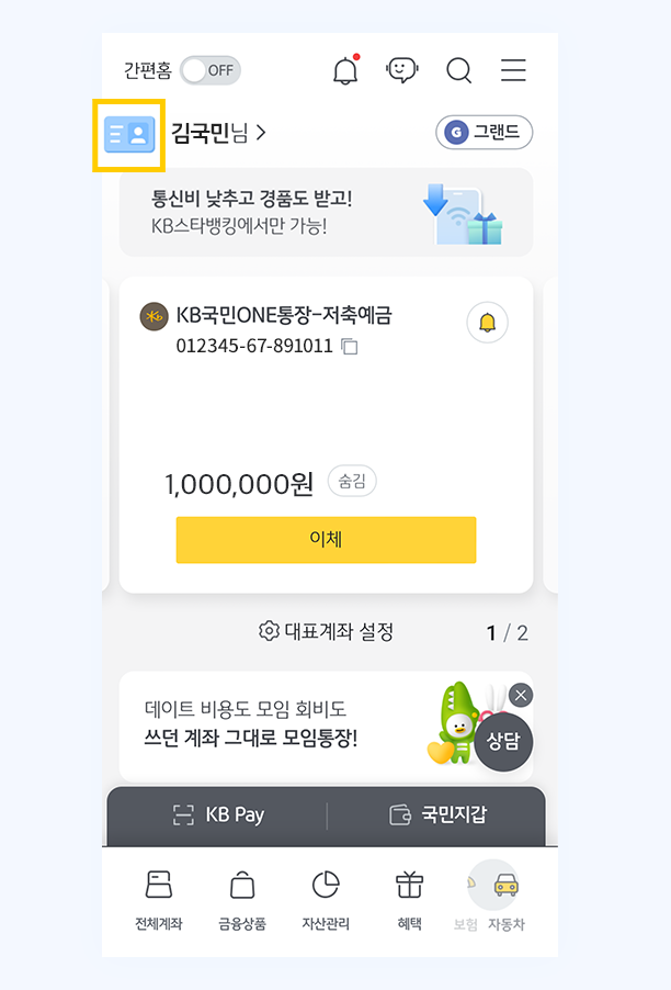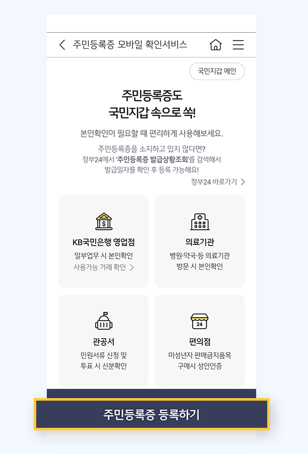 KB스타뱅킹에서 주민등록증 정보를 등록하면 일상생활에서