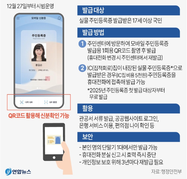 안녕하세요! 메이킹맨입니다. 모바일 신분증 발급 시범 운영을 담달 12월27일부터 실시한다고 합니다. 그래서 오늘은 대한민국 정부가 개발한 정부24 모바일 신분증에 대해 알아보겠습니다. 이 디지털 신분증 시스템은 기존의 신분증을 스마트폰 앱을 통해 디지털 형태로 대체하기 때문에, 더 이상 실물 신분증을 항상 가지고 다닐 필요가 없어졌습니다. 이제는 더 편리하고 안전하게 신원을 확인할 수 있는 방법이 생긴 것입니다.