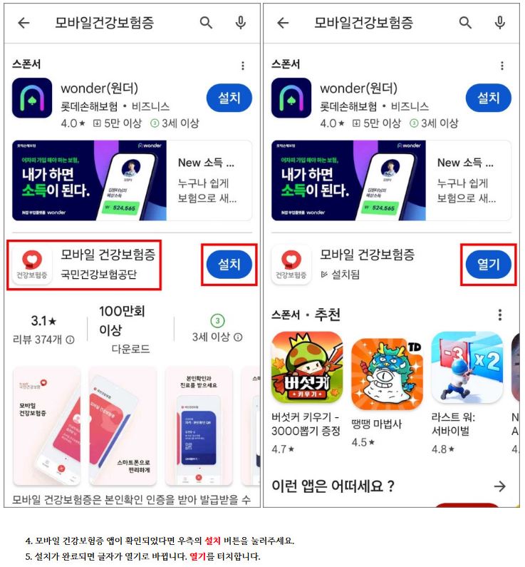 모바일 건강보험증 설치 방법