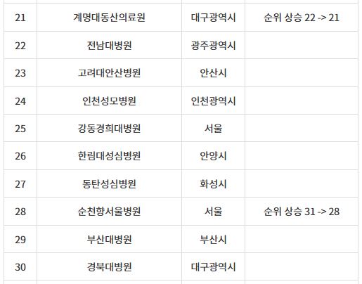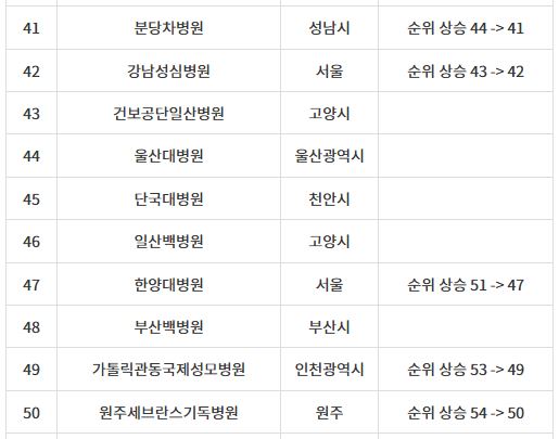 인하대병원 - 순위 상승 13→9