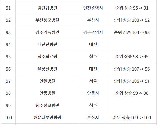 1위에서 100위 병원