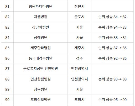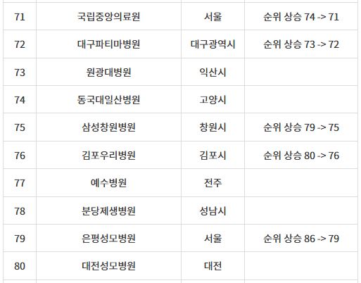 분당서울대병원 - 세계 81위 (전년 93위)