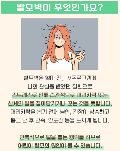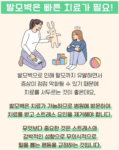 발모벽의 요인이 되는 소아 강박증의 일반적 증상과 개선 방법을 다음과 같이 정리할 수 있습니다.