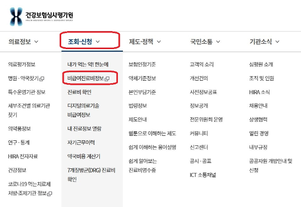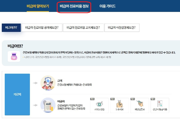 1. 건강보험심사평가원 접속 비급여 진료비 정보 클릭!