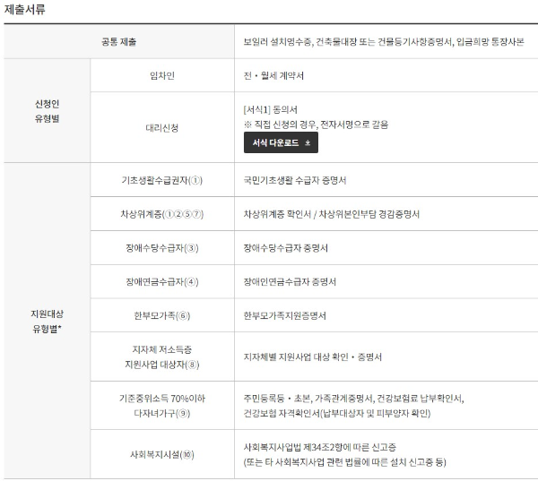 - 장애인 : 장애수당수급자 증명서/ 장애인연금수급자 증명서