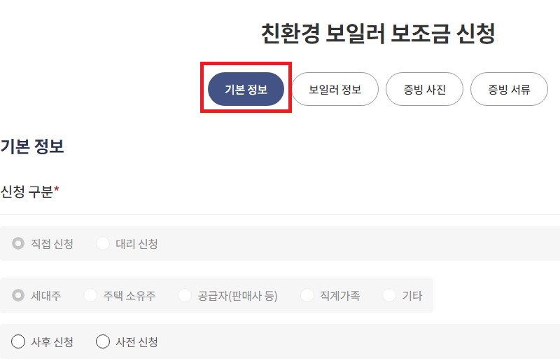 신청인의 정보를 입력하고 난 후 차례대로 보일러 정보, 증빙사진, 증빙서류를 입력해 주면 됩니다.
