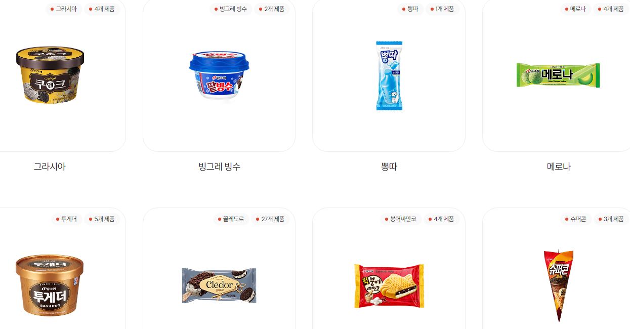 빙그레의 제품 라인업