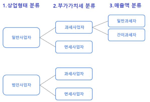 과세 사업자와 면세 사업자로 나눌 수 있습니다.