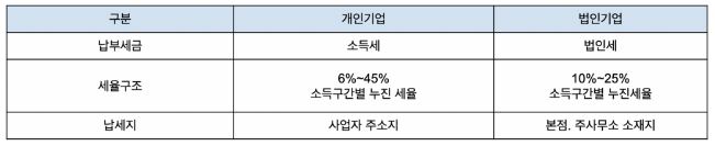 세금은 법인 사업자와 개인 사업자의 가장 큰 차이가 발생하는 영역인데요.