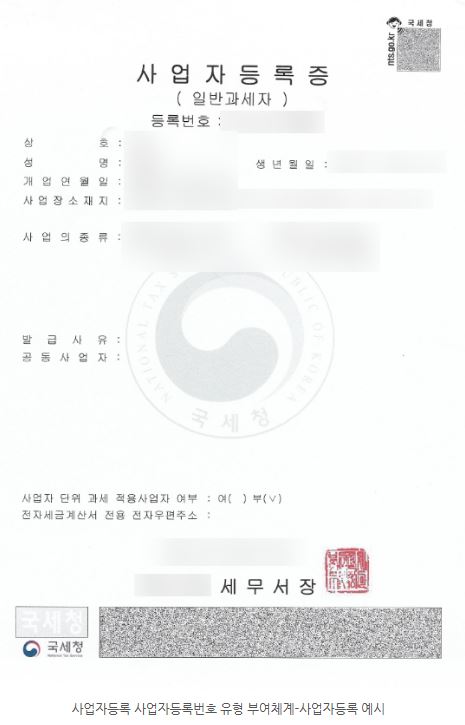 이는 부가가치세를 내야 하는 사업자냐 내지 않아도 되는 사업자냐에 따른 구분입니다.