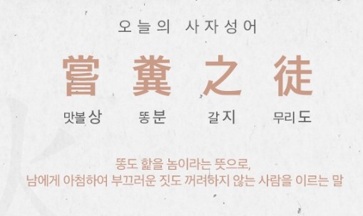 ○ 嘗(맛볼 상) 糞(똥 분) 之(갈 지) 徒(무리 도)