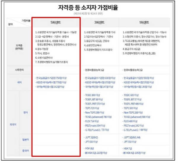 소방시험 가산점을 받기 위한 조건