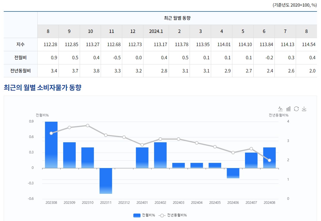이것들을 토대로 현재 소비자물가지수 동향이 어떤지 살펴보겠습니다.