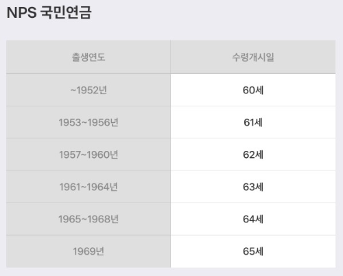수령할 수 있는 나이는 출생 연도에 따라 달라지는데요. 국민연금 수령 요건을 채웠다면, 1969년생부터는 65세에 연금을 받을 수 있어요. 하지만 국민연금을 납부할 수 있는 상한 연령이 59세이기 때문에, 5년의 공백이 생길 수 있다는 점이 문제로 떠오르고 있죠.