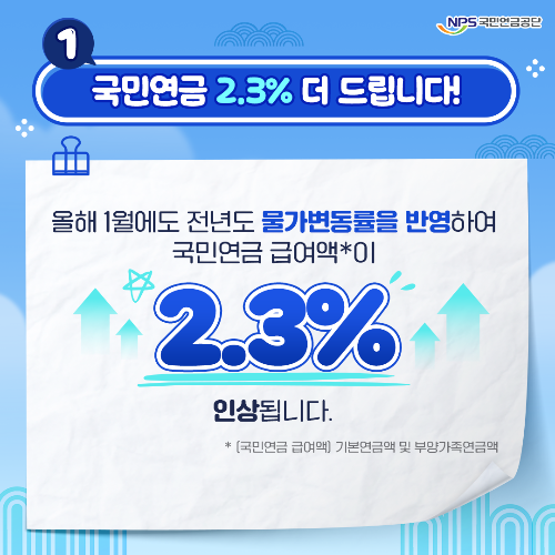 매년 전년도 소비자 물가 상승률만큼 연금 수령액이 인상되어요.