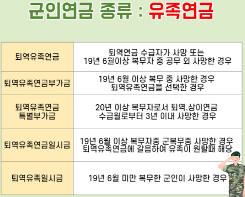 또한 군인연금에는 퇴직 유족급여와 퇴직수당도 있는데요.