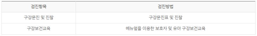 -대상자 : 생후 14일부터 71개월까지의 영유아를 대상으로 검진시기별로 선정