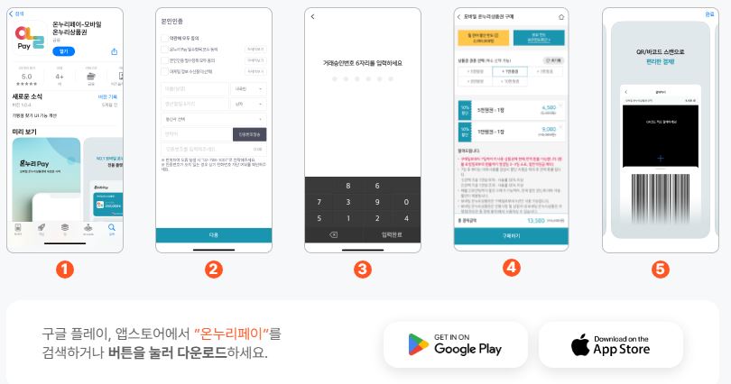가입방법은 구글 플레이스토어 또는 앱스토어에서 “온누리상품권” 검색하여 설치 후 안내에 따라 회원가입 진행
