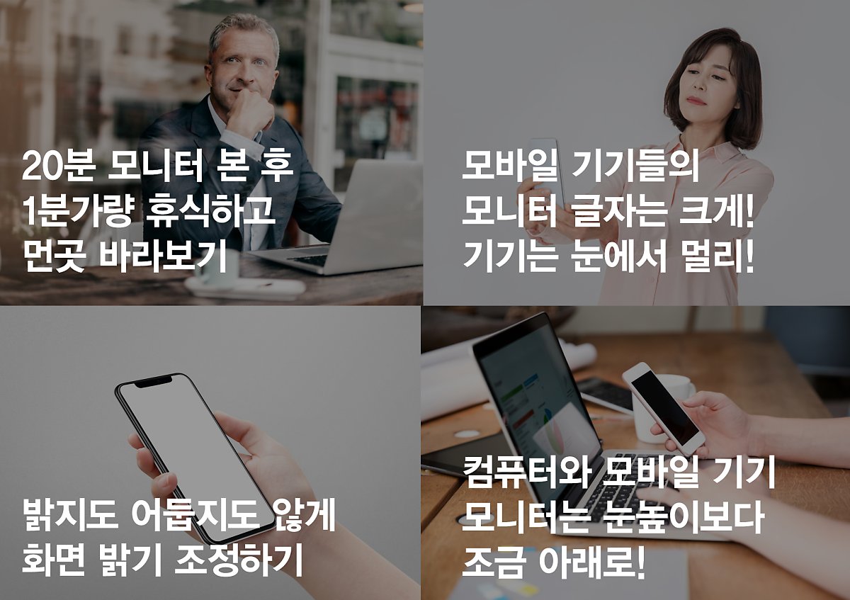 VDT 증후군은 스마트기기를 많이 보는 생활 습관에서 시작되기 때문에 예방법은 이를 고쳐나가는 것부터 시작해야 합니다.