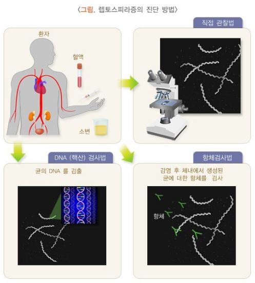 진단은 MAT(microscopic agglutination test) 검사법을 이용하여 1주 간격으로 2회 이상 검사하여 항체역가가 4배 이상 증가되는 것을 확인하거나, 증상이 생긴 후 1주일 이내의 혈액, 4~10일 후의 뇌척수액, 또는 10일 이후의 소변에서 렙토스피라를 분리 배양하여 확인하면 가능하다. 그러나 배양법은 보통 결과를 얻기까지 수 주일이 필요하므로 유용하지 않다. 가을철 열성 질환으로 신증후군 출혈열, 쯔쯔가무시증 등과 구별이 필요하고, 수막염, 뇌염, 간염 등과도 구별해야 한다.