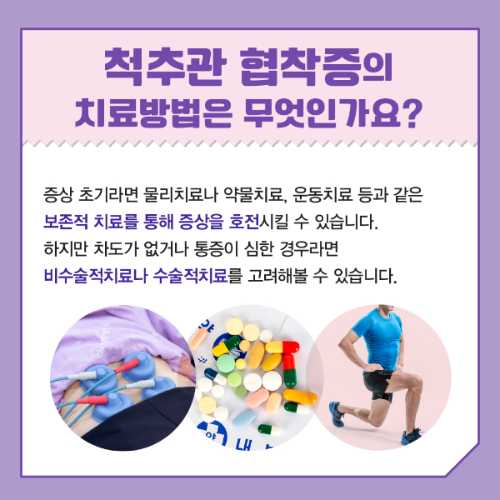 운동요법을 병행하여 더 이상 협착증이 진행하지 않도록