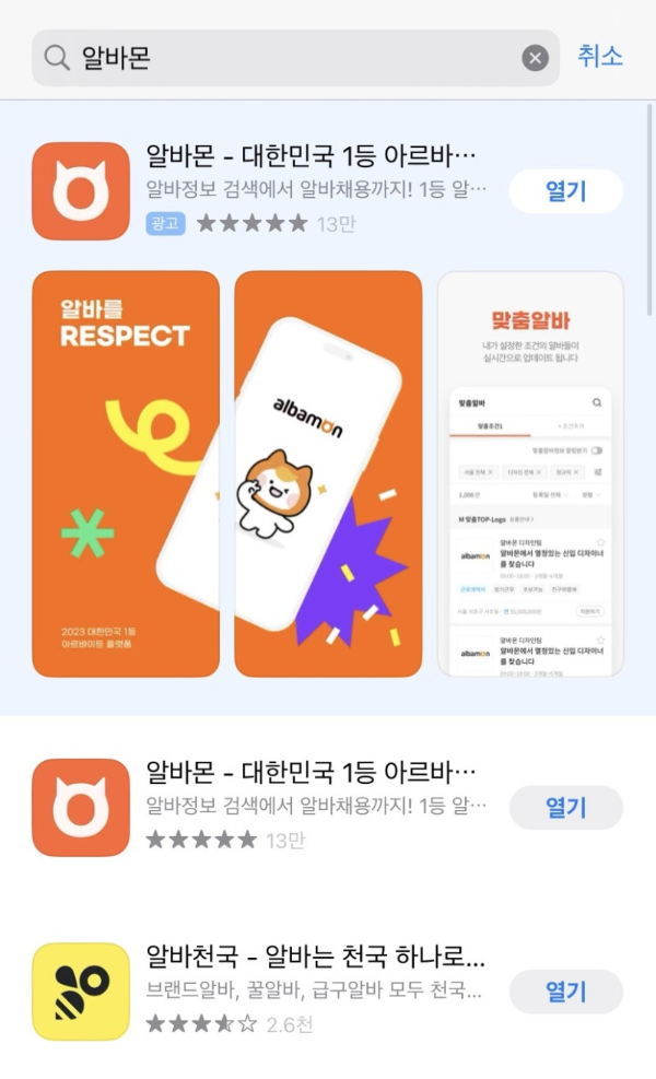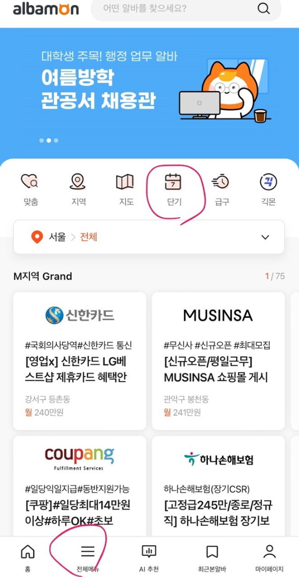 알바몬 도는 알바천국 앱을 활용하세요.