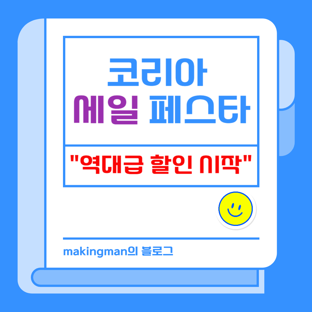 안녕하세요 메이킹맨 입니다. 11월 9일부터 대형마트, 백화점, 온라인쇼핑 등 2,600개사 이상이 참여하는 국내 최대 규모의 쇼핑행사가 시작된답니다. 이번 2024 코리아세일페스타의 슬로건인 ‘국가대표 쇼핑축제’에 걸맞은 구성으로 대한민국을 대표하는 기업들의 제품을 볼 수 있는 ‘팀 코세페’, 다양한 기획전들이 준비되어 있는 ‘코세페 마켓’, 지자체들이 자랑하는 대표 지역축제 등 알차게 준비되어 있습니다.