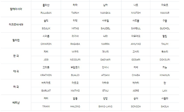태풍 이름의 선정 과정