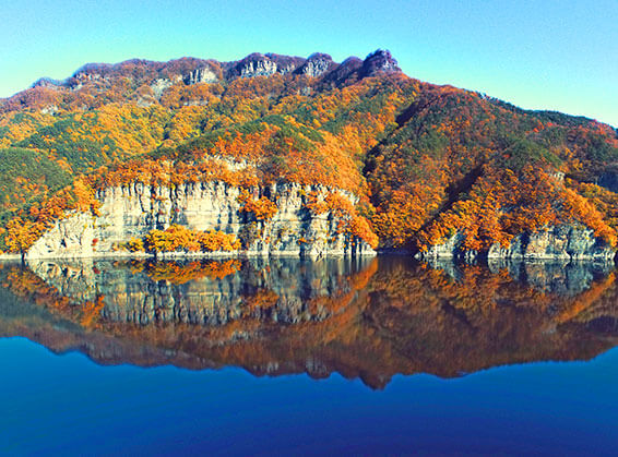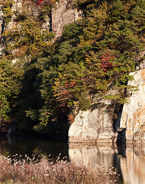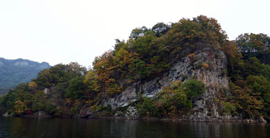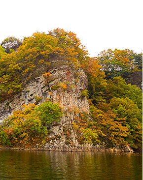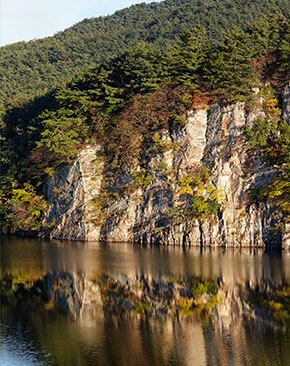 창랑적벽 : 전라남도 화순군 이서면 창랑리 278 잔잔한 물결에 반영되는 적벽의 모습과 그 뒤로 보이는 작은 산들의 모습을 전망대에서 감상 가능