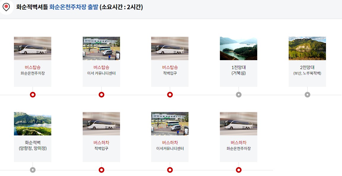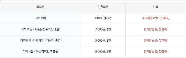 운행요금 :화순온천 (7,000원 / 1인), 이서커뮤니티센터 · 화순적벽 (5,000원 / 1인)