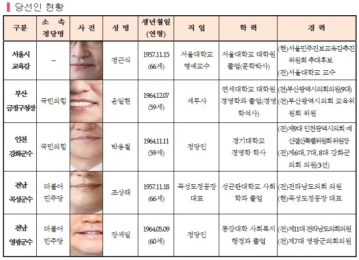 서울시교육감 보궐선거 : 진보 진영의 정근식 후보가 득표율 50.24%로 보수 진영의 조전혁 후보와 '중도보수'를 표방한 윤호상 후보를 누르고 당선됐습니다.