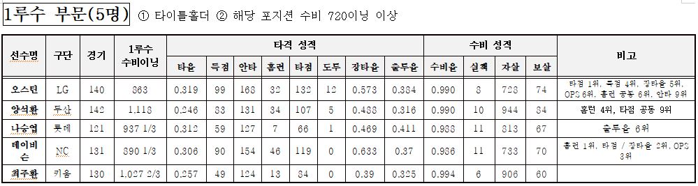 1루수 부문: 5명