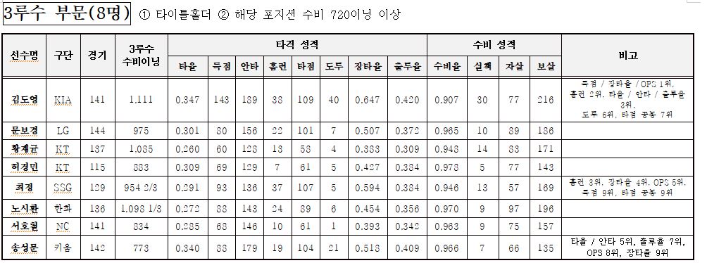 3루수 부문: 8명