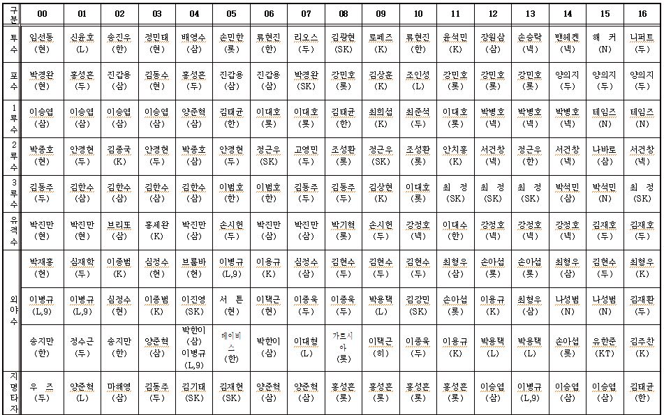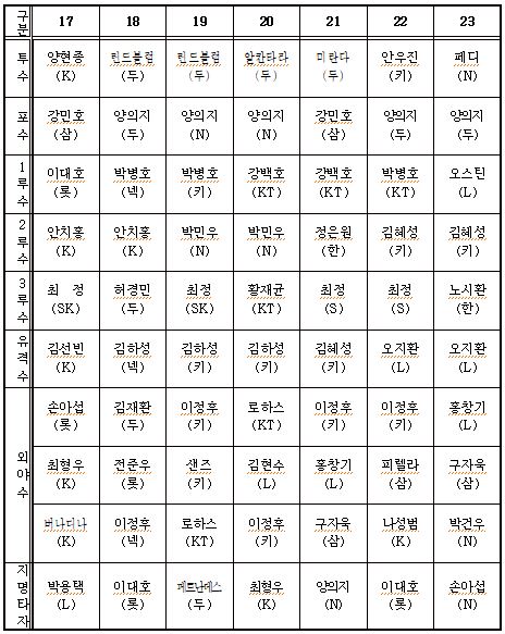외야수 부문: 19명